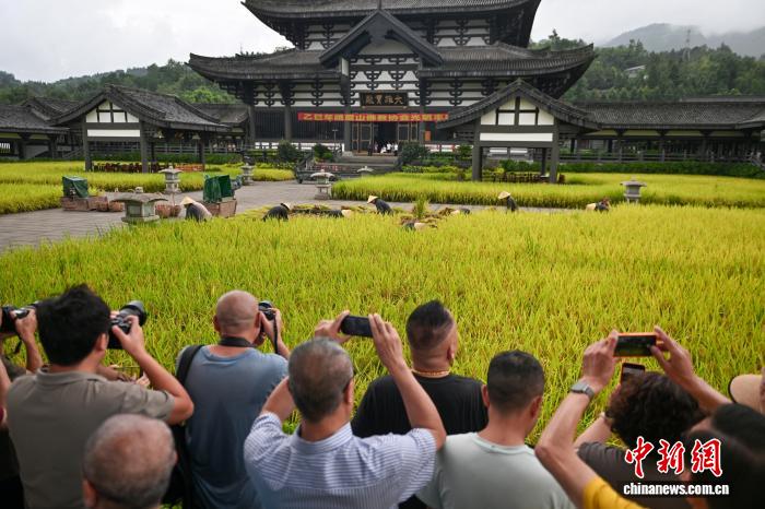 四川洪雅光明寺30余畝水稻迎豐收